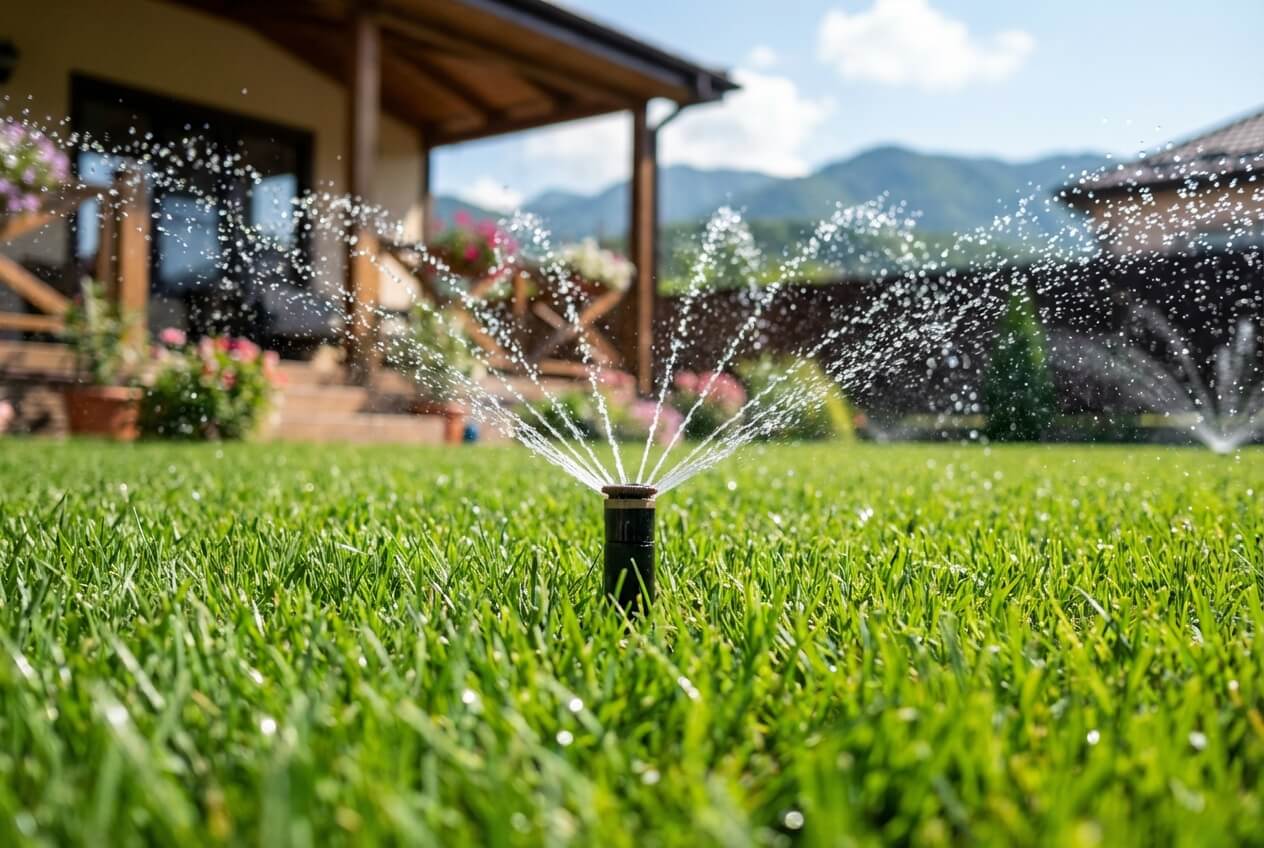 Решение: сделали комбинированную систему — дождеватели для газона и капельный полив для цветов, настроили разные графики полива